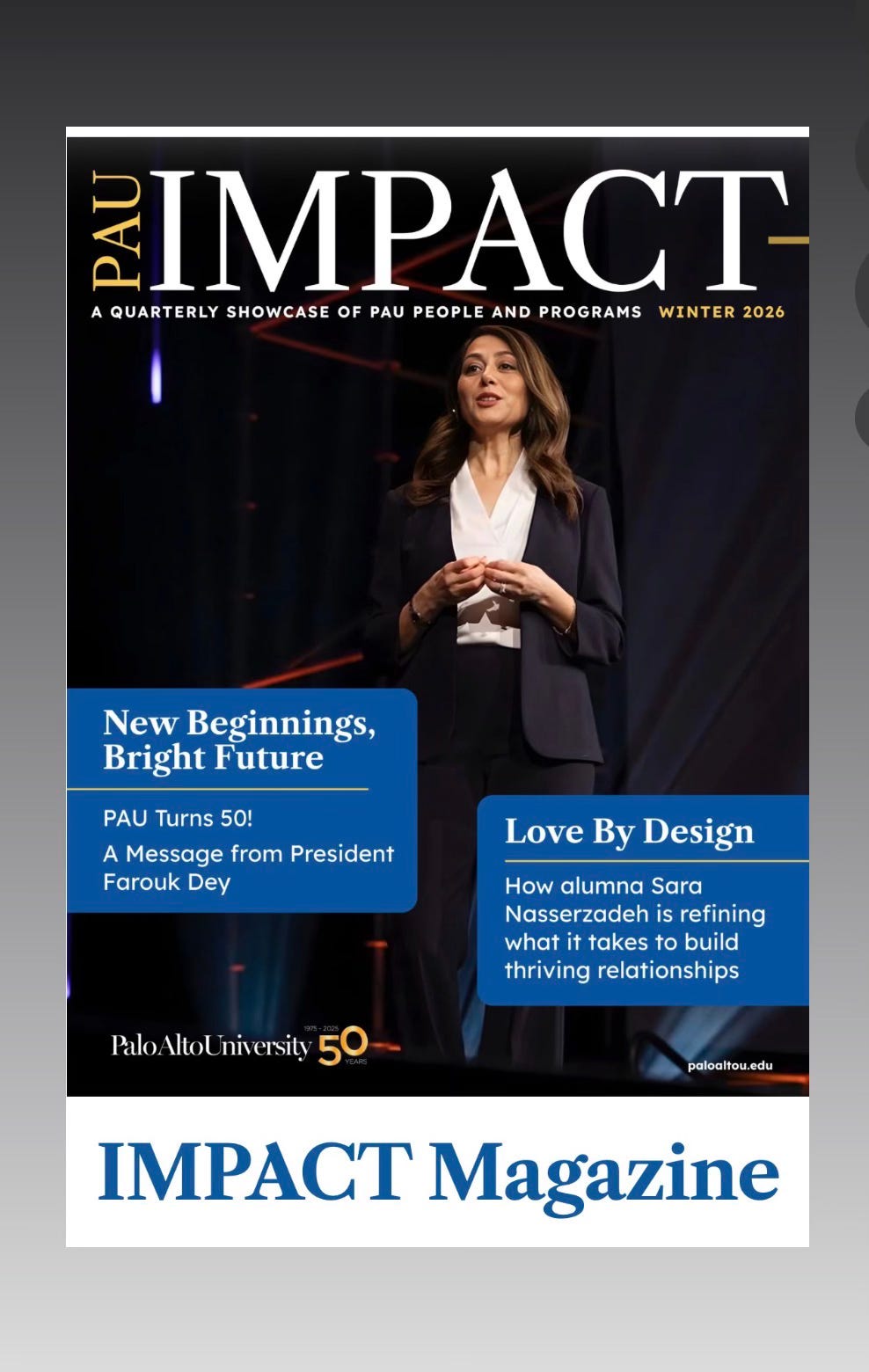 The Impact Magazine | Cover story “Love by Design” with Dr. Sara Nasserzadeh.